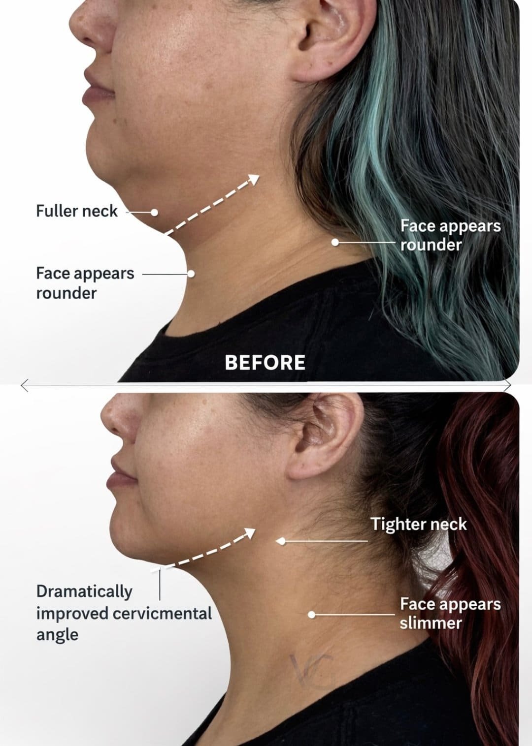 - Restores jawline definition